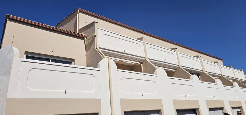 En complément, nous avons installé des descentes d’eaux pluviales en finition blanche, parfaitement intégrées à la façade de la résidence pour un rendu discret, propre et harmonieux. Ce choix permet de conserver une cohérence visuelle tout en garantissant une évacuation efficace des eaux de pluie.