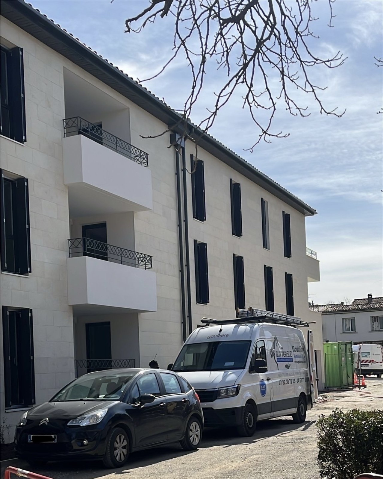 Installation de gouttières aluminium G325 – Chantier à Vendargues (34)