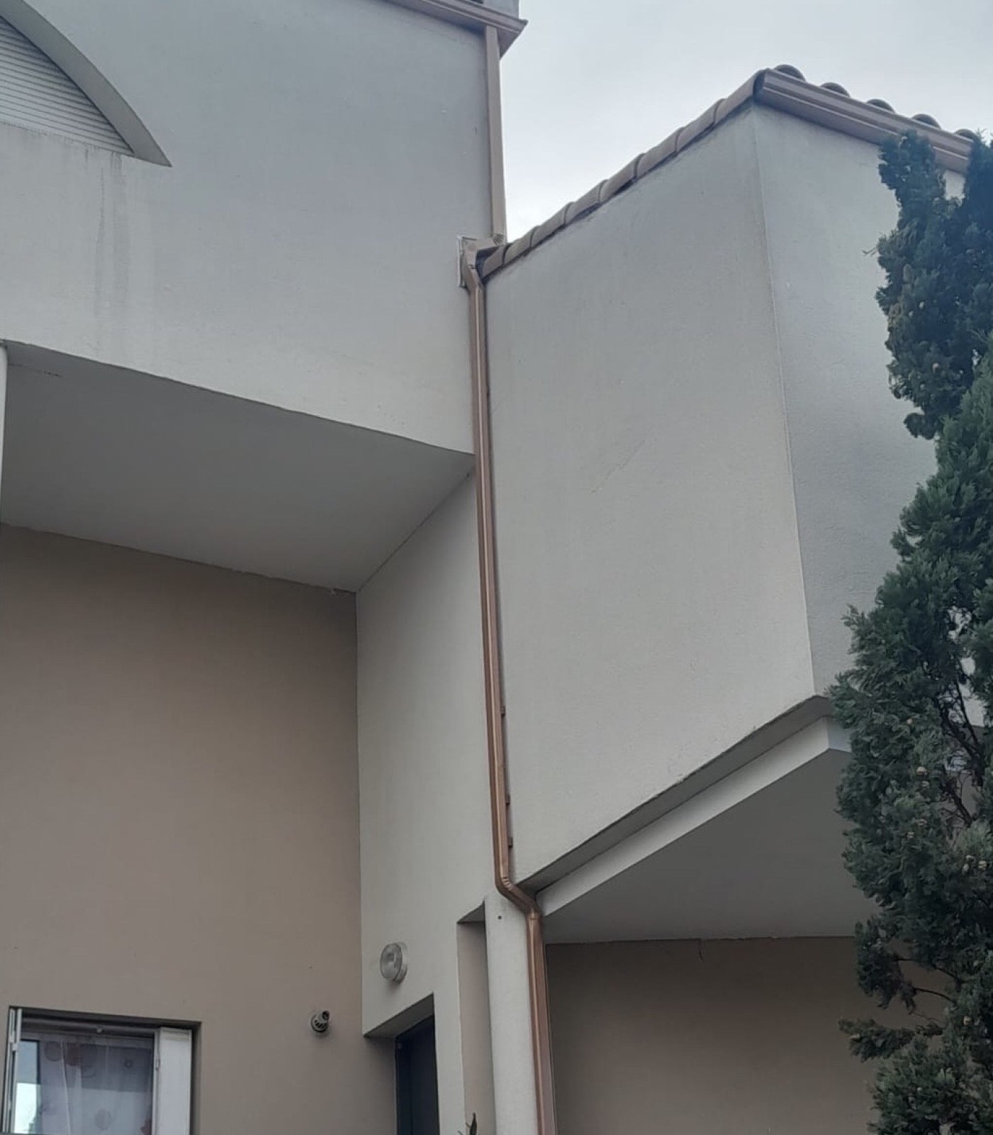 Aujourd’hui, notre équipe est intervenue sur un chantier à Montpellier, réalisé pour notre client JS Couverture, en partenariat avec SM HABITAT. Nous avons procédé à la pose de gouttières aluminium en forme corniche G300, accompagnées de descentes rectangulaires en aluminium couleur cuivre.