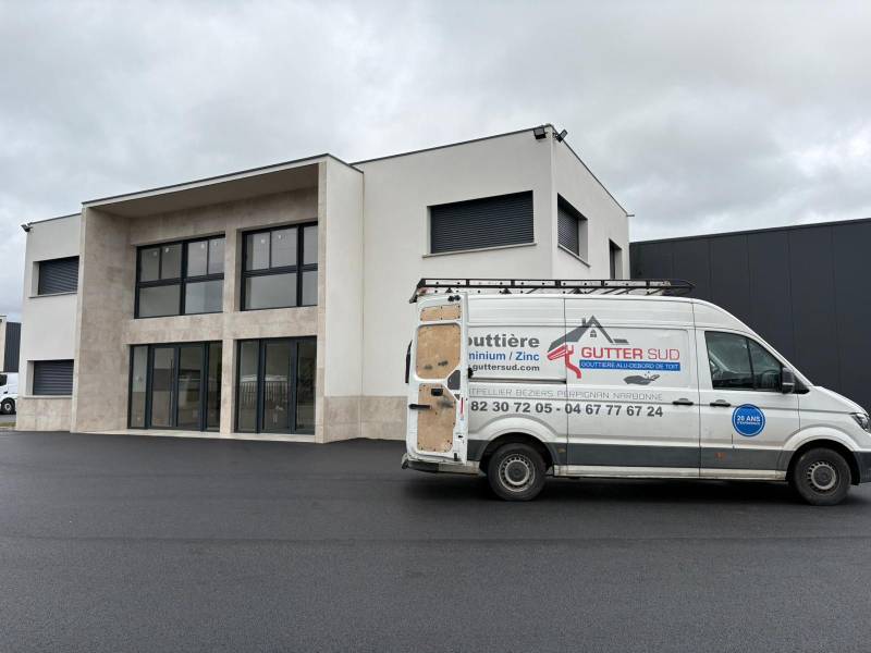 Aujourd’hui, nous sommes intervenus sur un chantier situé à Montredon-des-Corbières pour la pose d’un système complet d’évacuation des eaux pluviales sur un grand dépôt. L’objectif de cette intervention était d’assurer une gestion efficace des eaux de pluie sur une toiture de grande surface grâce à l’installation de boîtes à eau en aluminium sur mesure et de descentes adaptées à un fort débit.