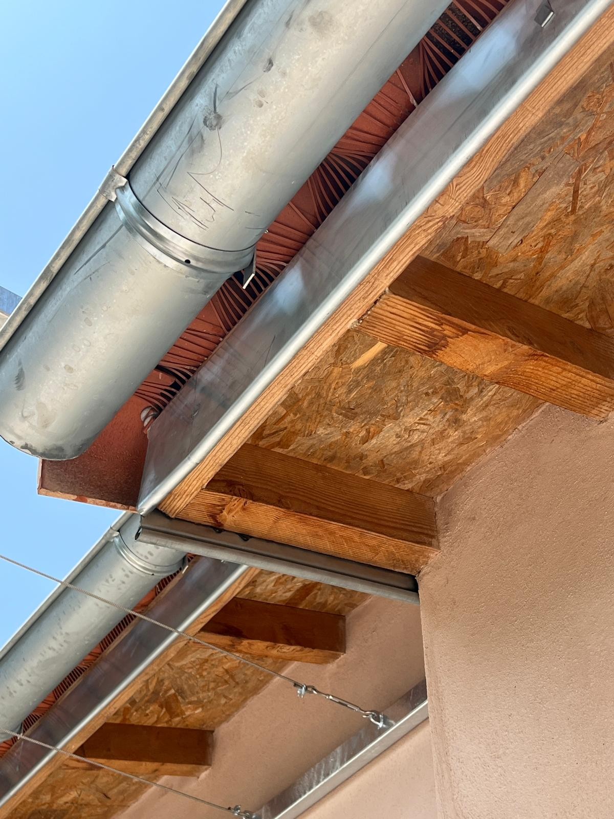 -Pose avec des crochets Abouti en galva sur des crochets tuiles après avoir posé des habillages de planche de Rive en zinc naturel plié par nos soins dans nos ateliers dans les règles de l'art pour protéger les planches de Rives des intempéries.